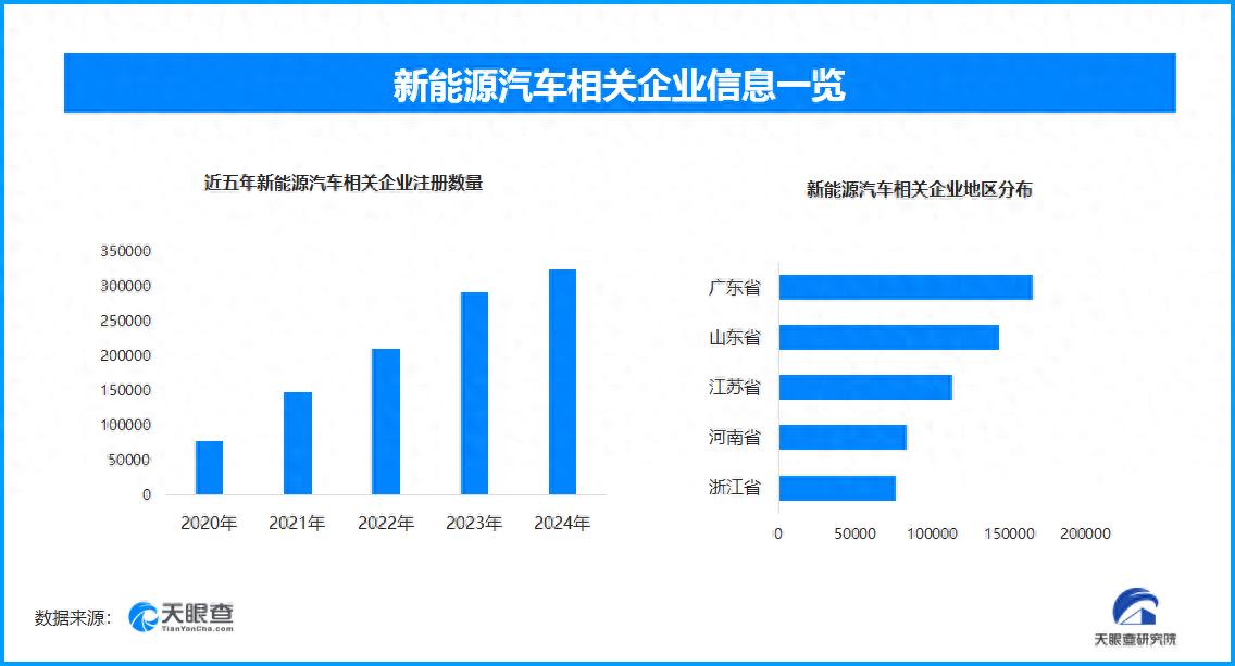 天眼查专业版数据显示,截至目前我国现存在业、存续状态的新能源汽车相关企业超153.3万家。其中,2025年截至目前新增注册相关企业约17.9万余家,从企业注册数量趋势来看,近五年间,新能源汽车相关企业的注册数量呈现出逐年增长的态势,并在2024年达到顶峰。